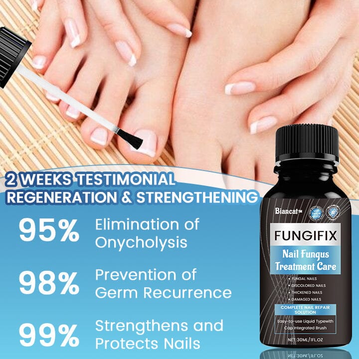 Biancat™ FungiFix Nail Fungus Treatment Care Fluid offers a targeted approach to improving nail health, particularly for those dealing with onycholysis. Its specialized formula, rich in essential nutrients, revitalizes, moisturizes, and strengthens nails, enhancing their durability and appearance. With its proactive defense mechanism against damage, it ensures extended, healthier nail growth, providing the comprehensive care your nails need.