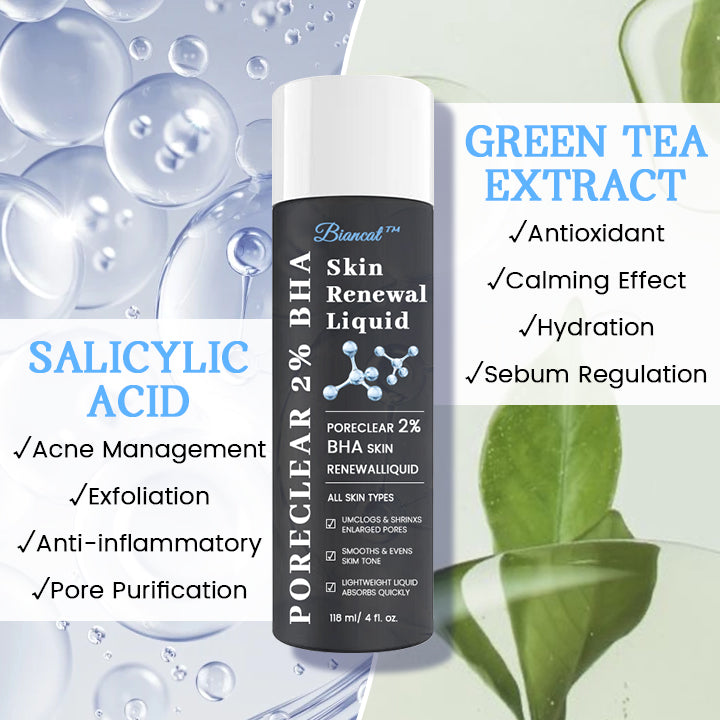 Biancat™ PoreClear 2% BHA Skin Renewal Liquid features two principal active components: