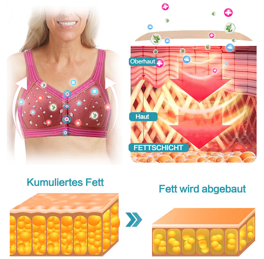 Unser Slimline™ Ionische Hebe-Korrektur-Lymphvität-Entgiftungs-BH kann Ihnen helfen, Ihr Abnehmziel zu erreichen, auch wenn Sie nicht regelmäßig Sport treiben und sich ausgewogen ernähren. Die 80-prozentige Ferninfrarot-Therapie kann Sie dabei unterstützen, Ihr Idealgewicht zu erreichen. Dieser BH regt den Stoffwechsel an, stimuliert das Lymphsystem, entgiftet den Körper und beseitigt angesammelte Cellulite und Ödeme. Das fettverbrennende Gewebe mit elektrischem Stein verstoffwechselt effizient Fett und ermöglicht es Ihnen, im Schlaf, bei der Arbeit oder beim Sport Fett zu verbrennen und über Nacht Ihre perfekten Körperkurven zu formen!
