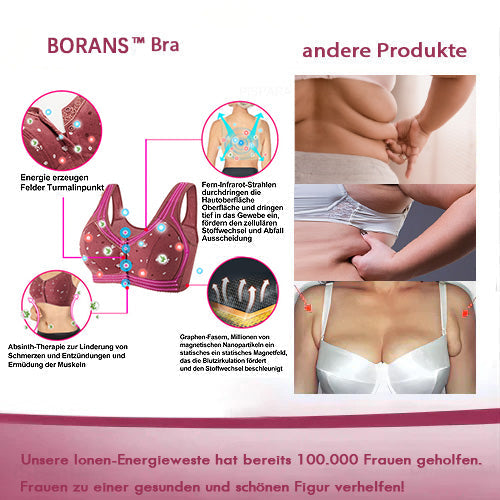 Dieser BH hat mein Leben wirklich verändert. Noch erstaunlicher ist, dass er mir hilft, Giftstoffe aus meinem Körper auszuleiten. Mein Hormonhaushalt ist wiederhergestellt, und ich fühle mich nicht mehr am ganzen Körper müde. Ich wache jeden Tag voller Energie und mit einem Gefühl der Leichtigkeit auf. Ich bin aufrichtig dankbar für die Hilfe, die mir dieser BH gebracht hat!"