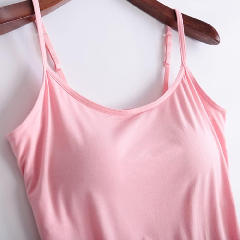 2. Camisole with Bra for Women:Sleeveless flowy tank tops for women in summer with adjustable shoulder strap, make the body more attractive, easy to put on and take off, it is a must have in your wardrobe, built-in non-removable cup, and the elastic inner lining feels firm and puts pressure on your chest.